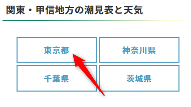 このサイトの全国の潮見表と天気を開いて、羽田なので「東京都」のボタンをクリックします。