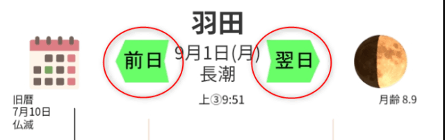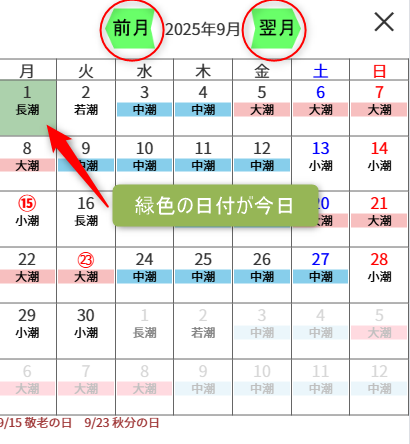 このタイドウェザーは最長で2年間の潮見表データを持っていますので、カレンダーを使って大きくジャンプできます。