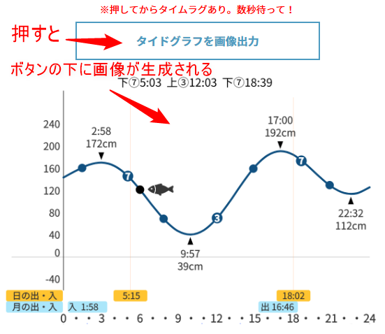 「タイドグラフを画像出力」ボタンを押すと、ボタンの下に画像が生成されます。