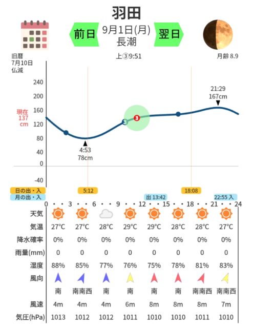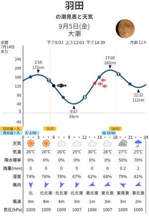 ちなみに、潮見表のグラフは潮(タイド)のグラフということで一般的にタイドグラフといい、私が作ったタイドウェザーは潮(タイド)と天気(ウェザー)が一目瞭然なのでタイドウェザーという名前にしています。