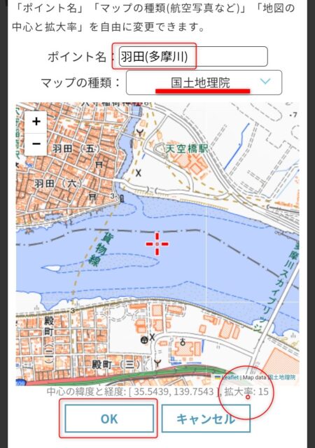 - ポイント名を羽田から羽田(多摩川)