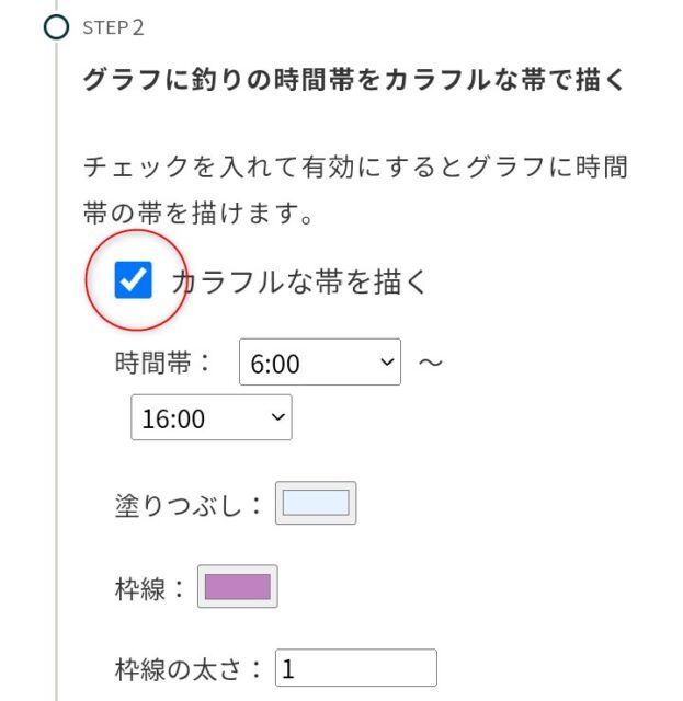 時間帯の塗りを消す時は先程のチェックを外すだけです。
