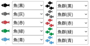 魚マークは「1匹」と「魚群」の2種類用意していて、5色から選べます。