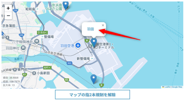 「ポイント名」「マップの種類(航空写真など)」「地図の中心と拡大率」を自由に変更できます。